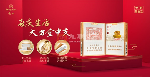 其次,同样传承自“红方印”系列的,还有“徽州贡烟”的高贵品质血统。黄山(红方印金中支)以彰显焦甜香烟叶的黄金品质,传递自然的焦甜香韵,丰富吸食感受,充分体现黄山品牌“典范焦甜香”的“口口满足、丝丝甜润”之美妙。