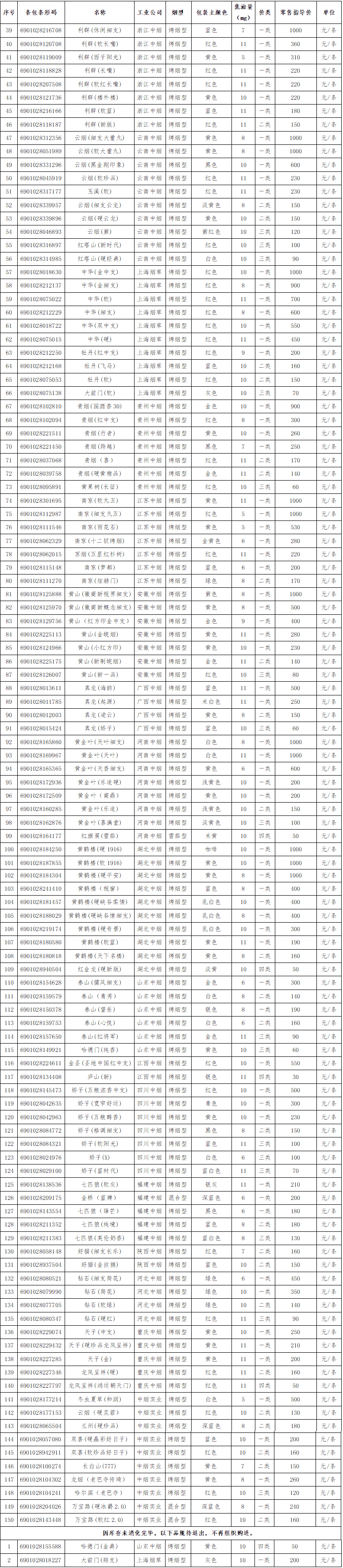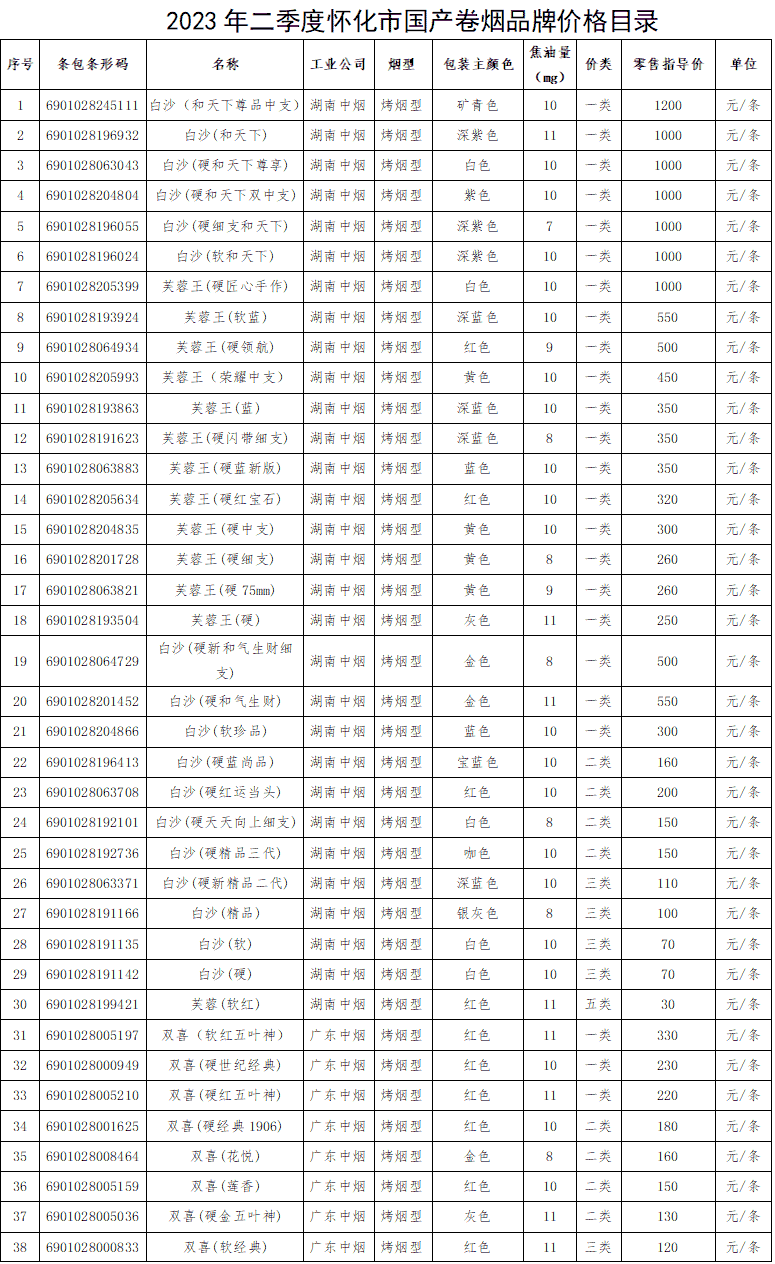 怀化市2003年二季度国产卷烟品牌价格目录
