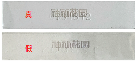 真烟字与字之间钢印力度不同,字体规则整齐。假烟钢印整体力度较轻,无质感。