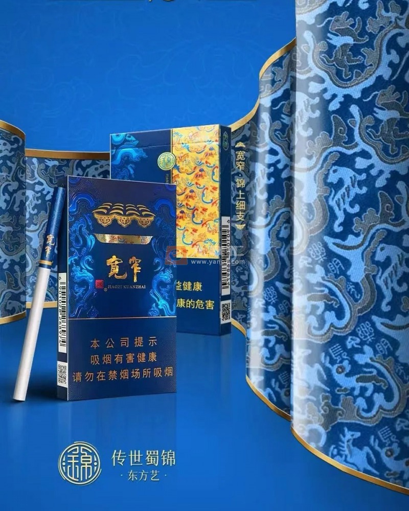 此外,宽窄(锦上细支)以千年蜀锦化作云烟,烟包之上处处可见蜀锦风采。深蓝底纹,靛蓝镶边,勾勒出的汉唐祥云瑞兽,反射出的炫光宛如流霞织锦,烟包背面的非遗锦绣平铺而上,似压缩千年的历史时光。