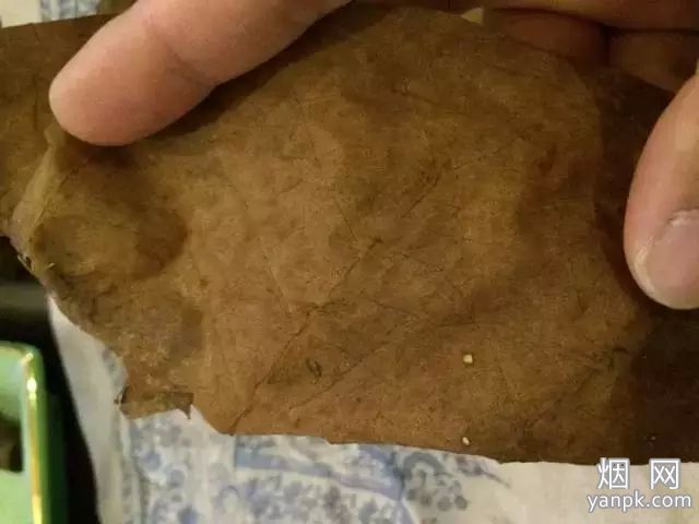 此为07陈年的茄衣,质厚富油,典型的Corojo 植株顶部叶片。