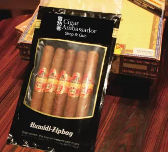 当你手边既没有塑料保鲜盒也没有冰盒的时候,一个小小的保湿袋就可以解决临时存放雪茄的燃眉之急。保湿袋兼具了自封袋功能又能保持袋子内一定的湿度,适合短时间存放雪茄。