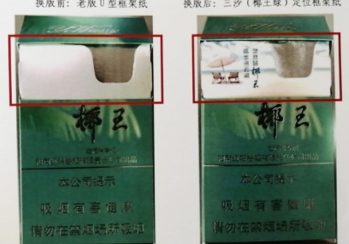本月三沙(椰王绿)卷烟在U型框架纸的左侧添加了“悠然品椰王,信步海云间”的宣传标...