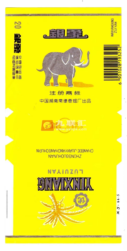上世纪70年代,湖南常德卷烟厂出品的“银象”烟标,主版图案是一只银色大象,形象栩栩如生,跃然纸上;副版图案是一棵茂盛的椰树,与主版图案遥相呼应,形象生动地体现出热带雨林的风貌特点。