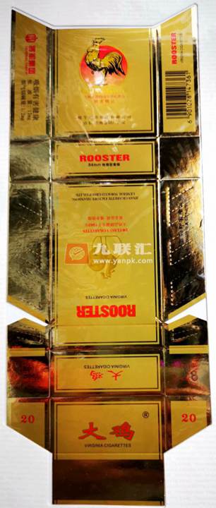 2000年,将军烟草集团有限公司山东济南卷烟厂出品了“大鸡”(金醇香)烟标。该烟标采用金色为底色,主、副版图案不同。主版图案为在一轮红日衬托下一只昂首啼鸣的雄鸡,寓意为大吉大利、喜庆吉祥;下方印有“大鸡品牌50周年世纪推出醇香精品”字样。副版图案为昂首啼鸣雄鸡的剪影,下方有“20 CLASS A CIGARETTES 大鸡品牌诞生于1949年 黄金品质 难舍情缘”字样。